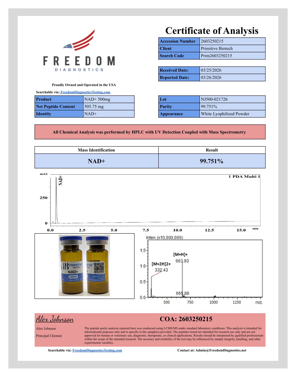 NAD+Â is now available. Primitive Biotech reviews every batch carefully because we ensure that each product is properly produced to include proper appearance and high purity.