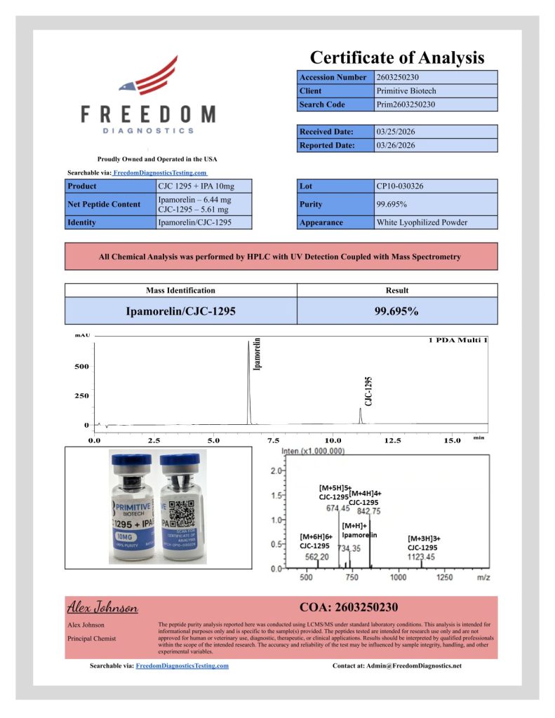 Each vial of lyophilized peptide comes in a 3ml vial which will require reconstitution. Each vial is safety sealed in the laboratory to ensure security during transport, storage and shipment. Primitive Biotech cares about the most accurate result for your research. For that reason, we never compromise the quality of our SARMs and peptides.